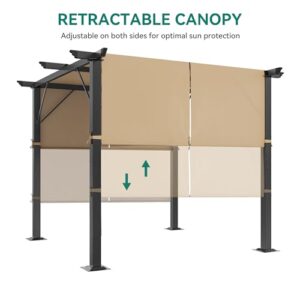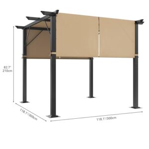 - Die Bigzzia Metall-Pergola verfügt über ein einziehbares Vordach, das ausgefahren oder eingefahren werden kann, sodass Sie die Flexibilität haben, die Menge an Sonnenlicht anzupassen, die Ihren Sitzbereich erreicht. Das Sonnenschutzdach ist so konzipiert, dass es abnehmbar und einziehbar ist, mit Klett-Patches auf jeder Seite für eine einfache Anpassung nach Ihren Bedürfnissen.