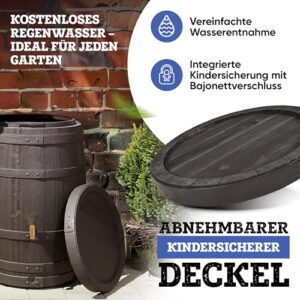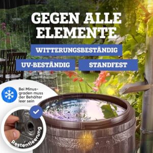 - ✅𝐌𝐀𝐃𝐄 𝐈𝐍 𝐆𝐄𝐑𝐌𝐀𝐍𝐘: 100% recycelter Kunststoff trifft auf hochwertige Verarbeitung aus 80% regenerativer Energie – langlebig und nachhaltig. Das Fass ist obendrein witterungsresistent, sodass es Wind und Wetter trotzt und dir Ersatzkäufe spart.