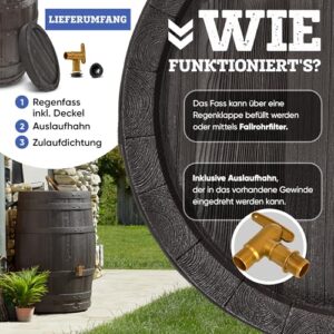 - ✅𝐖𝐀𝐒𝐒𝐄𝐑 𝐌𝐀𝐑𝐒𝐂𝐇 𝐀𝐔𝐒 𝐃𝐄𝐑 𝐑𝐄𝐆𝐄𝐍𝐓𝐎𝐍𝐍𝐄: Deine Pflanzen mögen das natürliche, weiche Regenwasser viel lieber als kalkhaltiges Leitungswasser. Mit einem Fassungsvermögen von 400 Litern bietet das Regenfass ausreichend Platz für dein Regenwasser.