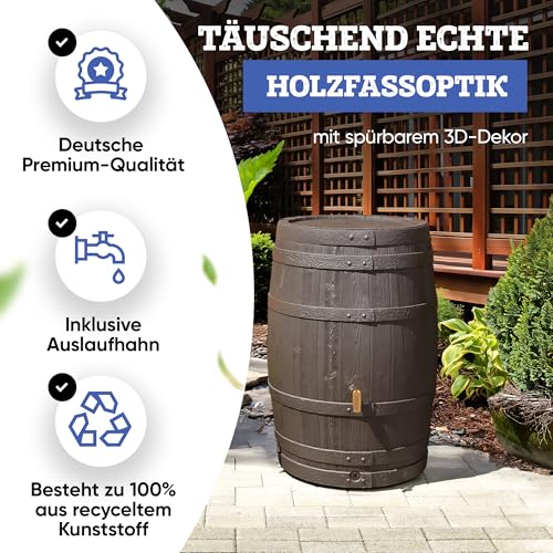 ![4rain Regentonne [400L] - Regenfass Vino in edler Holzoptik inkl. Auslaufhahn - Wetterfester Regenwassertank für Garten - Wasserfass, Regenwassertonne | Regenspeicher aus 100% recyceltem Kunststoff – Bild 6](https://www.baumarktberater.de/wp-content/uploads/2026/03/88342-6-4rain-regentonne-400l-rege.jpg)