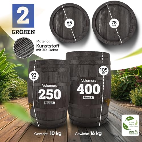 ![4rain Regentonne [400L] - Regenfass Vino in edler Holzoptik inkl. Auslaufhahn - Wetterfester Regenwassertank für Garten - Wasserfass, Regenwassertonne | Regenspeicher aus 100% recyceltem Kunststoff – Bild 7](https://www.baumarktberater.de/wp-content/uploads/2026/03/88342-7-4rain-regentonne-400l-rege.jpg)