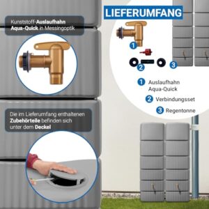 - 🌦️ Witterungsbeständig & UV-stabil – Die Regentonnen bestehen aus hochwertigem Kunststoff mit hohem UV-Schutz, was sie besonders robust und langlebig macht. Ob Sonne, Regen oder Frost – das Material trotzt extremen Wetterbedingungen und gewährleistet eine lange Lebensdauer.