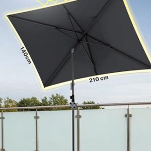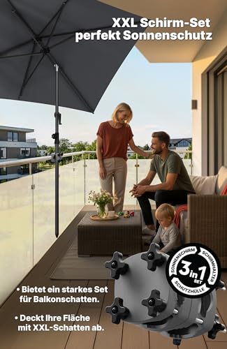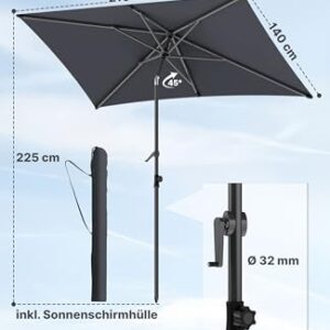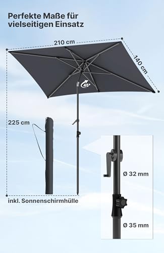 - OPTIMALER SONNENSCHUTZ: Großer sonnenschirm rechteckig (210 × 140 cm, UV 50+) spendet ganztägig Schatten auf dem Balkon. Dank der 45°-Knickfunktion lässt er sich perfekt zur Sonne ausrichten