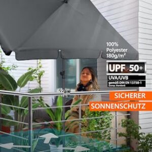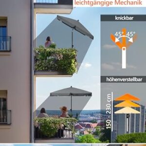 - ONNENSCHUTZ AUF DEM BALKON PERFEKT GELÖST – Dank der platzsparenden Schirmhalterung ist der Sonnenschirm am Balkongeländer sicher und stabil befestigt; Schirm Balkon in Idealgröße und Form, speziell für Balkone optimierte Abmessungen und Funktionen