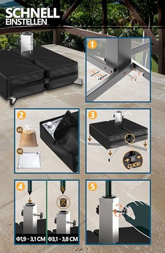 - EINFACH MONTIEREN - Der Ständer ist einfach mit Sand befüllbar und bietet einen sicheren Halt. Passt für alle Schirme wie Sonnenschirm eckig, rechteckig und rund