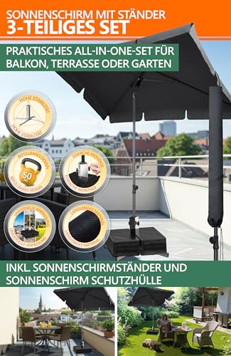- PRAKTISCHES 3-TEILIGES SET FÜR BALKON - Umfassendes Set aus Sonnenschirm mit Ständer und Hülle für sicheren Sonnenschutz. Der Sonnenschirm Ständer ist befüllbar, stabil und einfach zu montieren