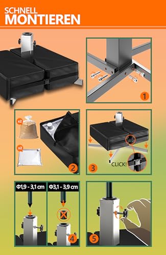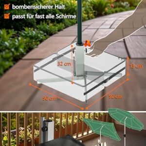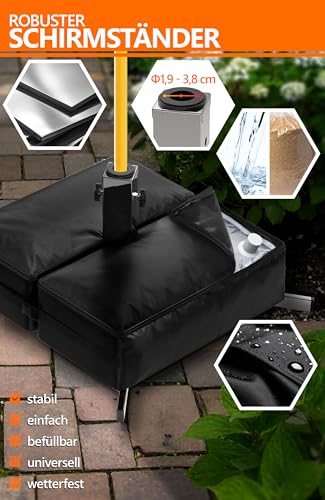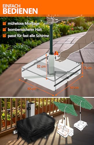 - SCHNELL MONTIEREN - Der mit Sand befüllbare Ständer bietet bombensicheren Halt für alle Schirmtypen, wie Sonnenschirm eckig, rechteckig oder rund. Die Montage ist schnell und mühelos