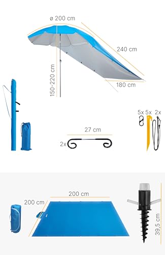 - MODERNER OUTDOOR-ALLROUNDER: Dieser Strandschirm windfest mit Sonnenschirm Bodenhülse ist höhenverstellbar und neigbar Mit einem Durchmesser von 200 cm spendet er flexibel Schatten
