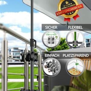 - BOMBENSICHER BEFESTIGEN - Durch hohe Klemmkraft ersetzt die Balkonklammer für Sonnenschirme mühelos 50 kg schwere Schirmständer auf dem Balkon und ermöglicht eine 100% sichere, stabile Sonnenschirm Befestigung am Balkon Geländer