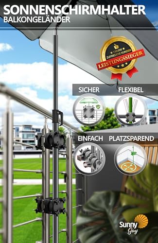 - UNSER NUMMER 1 SONNENSCHIRMHALTER FÜR BALKONGELÄNDER - SunnyGuy ist eine Sonnenschirm Balkon-Halterung für jedes Geländer, die bombensicheren Halt und höchste Stabilität gewährleistet