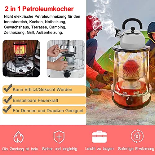 - 【Energiesparendes und Schutz Design】Tragbarer Petroleumofen Heizen ohne strom. Alles Was Sie Brauchen Ist Petrolium Und Sie Werden Viel Wärme Haben. Wenn Hurrikane, starke Regenfälle und starker Schneefall kommen, machen Sie sich keine Sorgen über Stromausfälle. Mit der Neigungswinkel-AbschaltAutomatik (Kippsicherung), Löschautomatik und Hypoxie-Schutz für einen sicheren und sicheren Gebrauch.