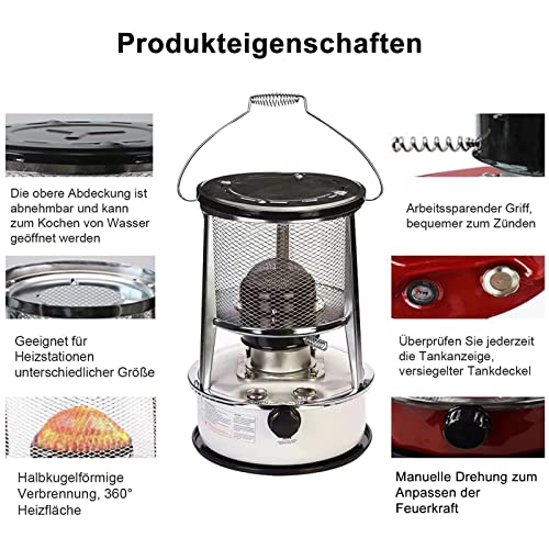 - 【Drehknopf zur Einstellung der Feuerkraft】Petroleumheizung hat ein Drehregulierventil, das die Feuerkraft je nach Bedarf regulieren kann; kein Lärm und Blendung, einfach jede Nacht zu bedienen. Der Heiztisch auf der Oberseite kann als Arbeitstisch zum Garen von Speisen verwendet werden.