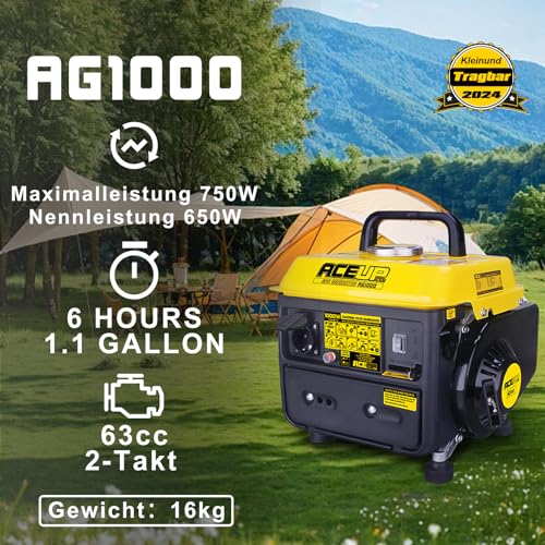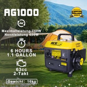 - Breites Anwendungsspektrum: Dieser tragbare Generator erzeugt 750 Watt Spitzenleistung sowie 650 Watt Betriebsleistung. Geeignet für die Außenbeleuchtung, wie Angeln und Jagen