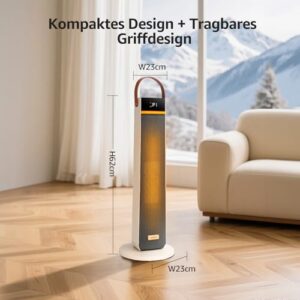 - 【Weitwinkel-Heizung】Dank der Weitwinkel-Oszillation verteilt dieser leistungsstarke Heizstrahler die Wärme innerhalb weniger Minuten gleichmäßig im Raum. Der integrierte Griff erleichtert den Transport zwischen Wohnzimmer, Schlafzimmer oder Büro.