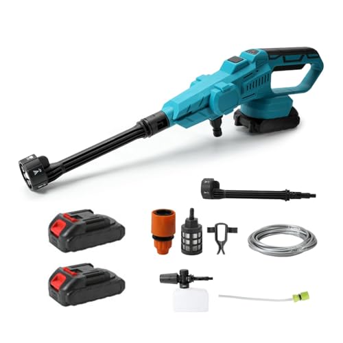- 【Hochwirksame Reinigungsleistung】 Die maximale Durchflussrate des batteriebetriebenen Hochdruckreinigers beträgt 6,3 l/min (380 l/h) und die Motordrehzahl beträgt 22.000 U/min. Zusammen mit dem Druck von 80 bar entfernt er mühelos oberflächlichen Schmutz. Ideal zum Waschen von Autos, zum Bewässern von Gärten, zum Reinigen von Häusern, Fenstern, Türen, Gebäuden, Wohnmobilen, Autos, Lastwagen, Booten, Decks, Einfahrten und Terrassen.
