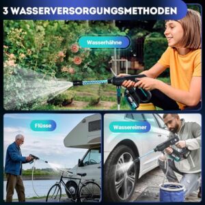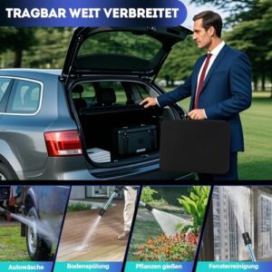 - MULTI-SZENARIO-ANWENDUNG: Kabelloser Akku Hochdruckreiniger ideal zur Autowäsche, Gartenbewässerung oder Bootsreinigung ohne Stromanschluss,entfernt mühelos Schmutz von Terrassen, Fassaden und Gartenmöbeln reinigt Zäune, Schwimmbadumrandungen, Hofeinfahrten und Dachflächen effizient, Leichtbau-DesignPraktische Tragefunktion für Rundum für Haus, Garage und Außenbereich