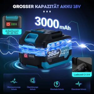 - KOMPATIBEL MIT MAKITA 18V BATTERIEN: Hochdruckreiniger Akku Kompatibel mit Makita 18V Akkus (BL1820/BL1830/BL1840/BL1850/BL1860 & B-Serien) – Nicht für G-Serie-Batterien geeignet.Spart Kosten durch Nutzung vorhandener. unsere Akku-Druckreinigerpistole mit Akku ist wiederaufladbaren 18V-3000-mAh Lange Akkulaufzeit möglich, Kabelloser Hochdruckreiniger mit intelligente Display zeigt die verbleibende Akkuleistung an, sodass Sie Ihre Arbeit überwachen Bequemer können Jeder Akku kann bei voller Ladung bis zu 30-40 Minuten lang verwendet werden.