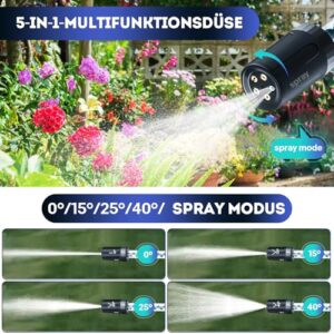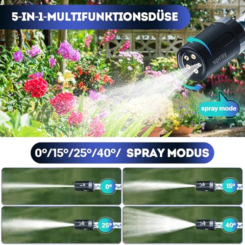 - 5-IN-1 MULTIFUNKTIONSDÜSE: Der Tragbarer Hochdruckreiniger Akku ist mit einer 5-in-1-Düse ausgestattet Durch einfaches Drehen der Düse können Sie zwischen 0°/15°/25°/40°-Strahl und Sprühnebel wählen – mit Schaumsprüher,Geben Sie Reinigungsmittel hinzu und nutzen Sie den Akku Hochdruckreiniger für schaumintensive Vorreinigungen bei hartnäckigem Schmutz. Diese Vielseitigkeit sorgt dafür, dass Sie ein breites Spektrum an Reinigungsarbeiten präzise erledigen können.