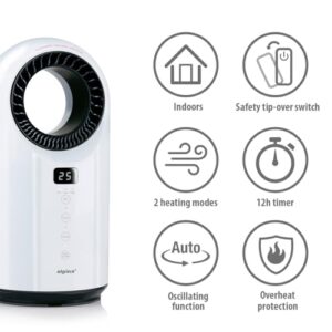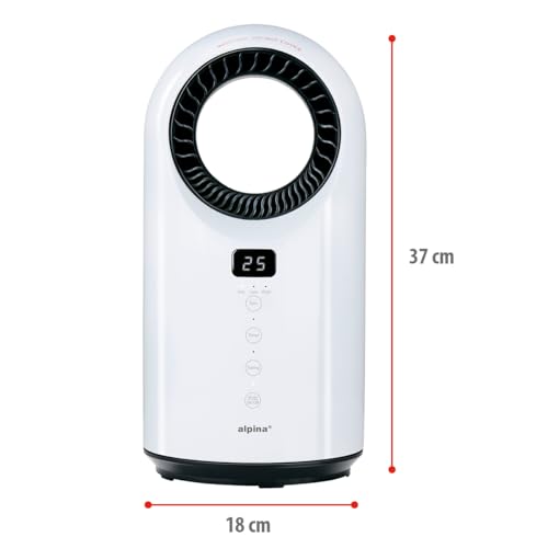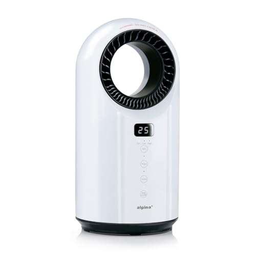 - ELEKTRISCHER HEIZLÜFTER MIT VENTILATOR – Dieser bladeless Heizlüfter von alpina bietet Heizmodi bis 1500W und Ventilatormodi bis 1000W. Ideal als flexible Heizung für Winter und Übergangszeit.