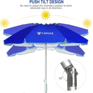 - 【Druckknopf-Neige- & Lüftungsschlitz-Design】 Der AMMSUN Strandschirm verfügt über einen Zwei-Wege-Kippmechanismus, mit dem Sie den Schatten einstellen und die Sonne schnell blockieren können, ohne den Strandschirm zu bewegen. Genießen Sie kühlen Schatten von Sonnenaufgang bis Sonnenuntergang. Luftbelüfteter 2 m Durchmesser. Baldachin entwickelt, um den Luftstrom für mehr Stabilität zu erleichtern