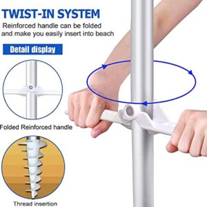 - Mit tragbarem, integriertem Sandanker: Der 2 m lange Strandschirm mit einem tragbaren, integrierten Sandanker, der Ihnen helfen kann, Ihren Schattenschirm ganz einfach in den Sand zu drehen und stärkeren Anker. Und die stabile Aluminiumstange macht den großen Terrassenschirm stabiler, hält Stabilität und sorgt für Sicherheit bei windigen Bedingungen, so dass Sie den ganzen Tag am Strand genießen können. Machen Sie sich keine Sorgen, dass der Regenschirm weggeweht wird