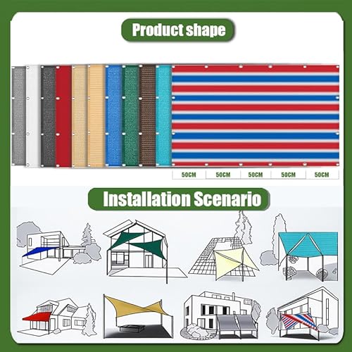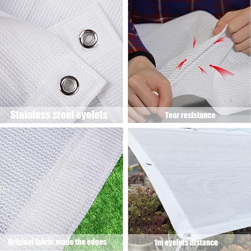- Mehrere Ösen für eine einfache Installation: Das Sonnenschutznetz verwendet EdelstahlÖsen mit einem Ösendurchmesser von etwa 1,3 cm und alle 1m befindet sich ein Ösen. Die Ösen sind mit Seilen(Bonus 5m), Haken oder Kabelbindern kompatibel und passen somit auch an Masten, Zäune oder Gestelle.