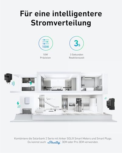 - Anti-energieverschwendung: Die Echtzeit-Stromüberwachung des Anker SOLIX Smart Zählers dauert nur 3 Sekunden. Er überwacht den Energieverbrauch in Echtzeit und leitet ihn an die Solarbank weiter, sodass diese bei Bedarf Strom liefern kann.