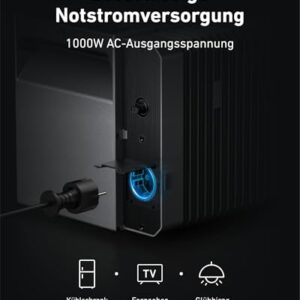 - 1000W NOTSTROMVERSORGUNG: Halte wichtige Geräte mit der 1000W AC-Steckdose auch während eines Stromausfalls am Laufen.
