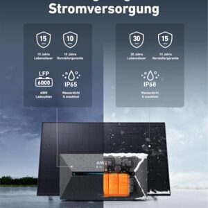 - LANGLEBIGE LEISTUNG: Die Solarbank 2 Pro versorgt dein Zuhause 15 Jahre lang mit 6000 Ladezyklen (10 Jahre Herstellergarantie). Solarpanels halten 30 Jahre (15 Jahre Herstellergarantie) und bleiben mit IP65 (IP68 für Panels) wasser- und staubdicht, auch bei -20°C Kälte!