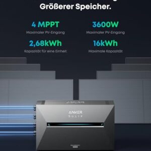 - Spare bis zu 1566€ im Jahr: 4 MPPTs für bis zu 3600W Solareingang, Anschluss von bis zu 8 PV-Panels und 5 Akkus (16,128kWh), dazu null Energieverlust dank Smart Meter – maximale Effizienz, maximale Ersparnis.