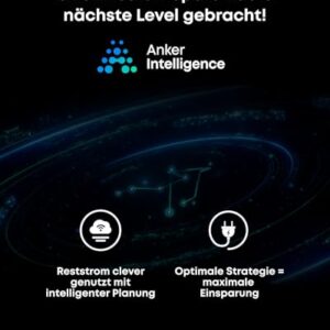- Anker Intelligence für maximale Ersparnisse: Anker Intelligence prognostiziert überschüssige Energie und plant die Nutzung automatisch, um die Energieeffizienz zu maximieren. Optimiert außerdem deine Nutzung, um noch mehr zu sparen.