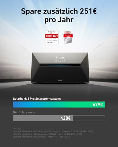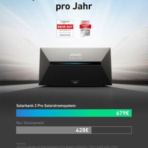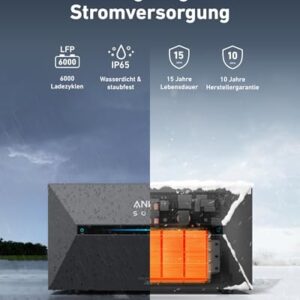 - 15 JAHRE LEISTUNG: Solarbank 2 Pro bietet 6.000 Ladezyklen und 15 Jahre Leistung mit einer 10-jährigen Garantie. Mit einem IP65-Dichtmittel ist sie wasser- und staubgeschützt und funktioniert bei -20°C.