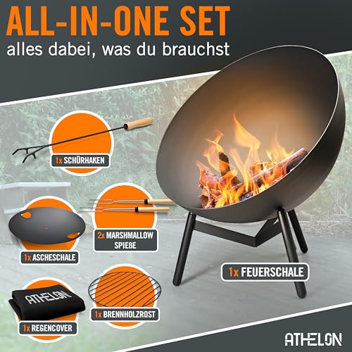 - 🔥UMFANGREICHES ZUBEHÖR - Das Feuerschalen-Set enthält: ✓ kleine Feuerschale, ✓ Schürhaken, ✓ Ascheschale, ✓ Brennholzrost, ✓ Regen-Abdeckung, ✓ zwei ausziehbare Lagerfeuer-Spieße!