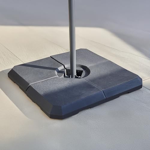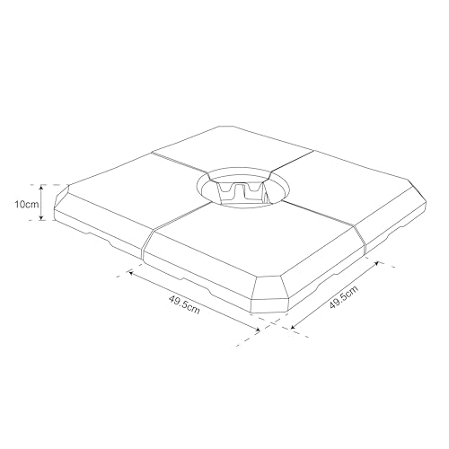 - ABMESSUNGEN: Abmessungen pro Teil (LxBxH): 49,5 x 49,5 x 10 cm. Befüllbar mit ca. 20 Liter Wasser oder 25 kg Sand pro Teil. Passend für Ampelschirme bis 2,5 x 2,5 m oder 3 m Durchmesser.