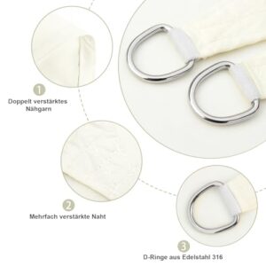 - ★【Langlebige Konstruktion】: Konkaves kantendesign für bessere dehnbarkeit. Jede ecke hat einen 316 edelstahl D-Ring. Ein dickes Gurtgurt wird am Rand des sonnensegeltuch genäht, machen Sie die markise noch stabiler. Alle Kanten haben zwei Nähfaden, um das Ausfransen und die Verzerrung der Kanten zu verhindern