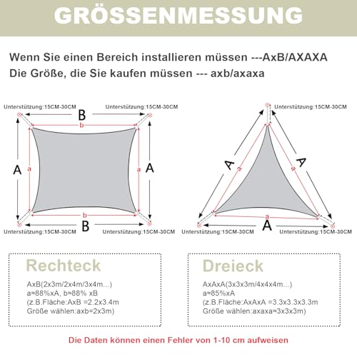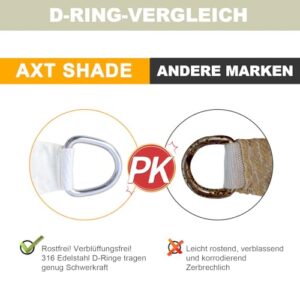 - ★【Einfach zu Installieren】: Die messung wird vom D-Ring zum D-Ring ergriffen, Lassen sie 15-30cm platz zwischen dem befestigungspunkt und dem segeltuch sonnensegel für hardware oder seil. Schlagen sie einen winkelwinkel von 40 grad für maximale spannung vor. Lässt wasser schnell abtropfen
