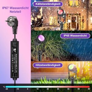 - 【IP65 Wasserdicht】Professionelle wasserdichte Struktur, die RGB Gartenbeleuchtung ist IP65, haben Sie keine Angst vor dem Regen. Darüber hinaus ist dieses Netzteil IP67 wasserdicht, der Stecker kann vollständig in die wasserdichte Außenbox gesteckt werden, um den wasserdichten Effekt zu verbessern.