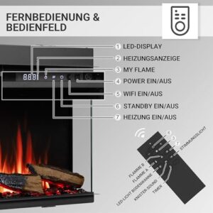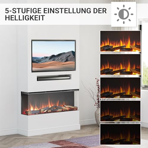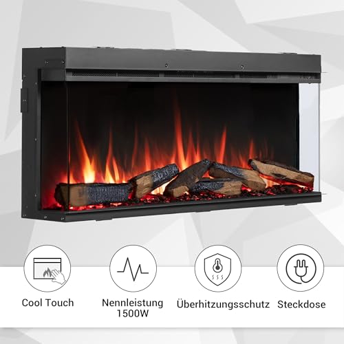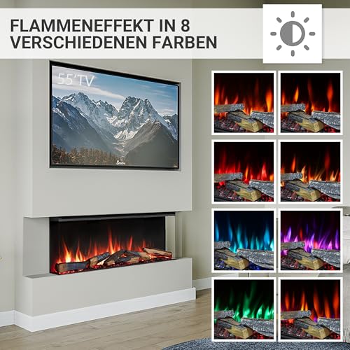 BALDERIA Athena 44″ Elektrokamin – Elektrischer Einbaukamin mit Heizung – realistischer 3D-Flammeneffekt, integrierte Knisterfunktion, LED-Beleuchtung, Fernbedienung, Timer, Thermostat – Schwarz