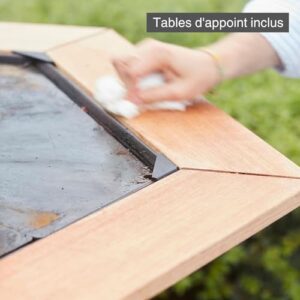 - Der Feuerschale mit Feuerplatte bietet viel Stauraum für Holz und Werkzeug, so dass alles, was Sie brauchen, in Reichweite ist, während Sie kochen. Der Holzgrill hat Kunststofffüße an der Unterseite, die Rostflecken auf Ihrer Terrasse verhindern.