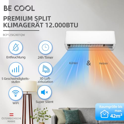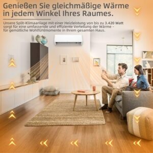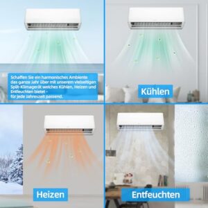 - 🌡️ Effiziente Kühl- und Heizleistung: Mit einer Leistung von 12.000 BTU (3400 W Kühlen / 3420 W Heizen) reguliert die T-PRO Series das Raumklima für bis zu 42 m² (max. 105 m³). Perfekt für Wohn-, Arbeits- und Schlafräume!