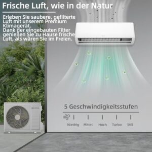 - 🌬️ Hochwertige Luftzirkulation & Entfeuchtung: Der 3D Air Flow (horizontal/vertikal Auto Swing) verteilt die Luft gleichmäßig, während die Entfeuchtungsfunktion schwüle Luft reduziert, ohne den Raum übermäßig auszutrocknen.