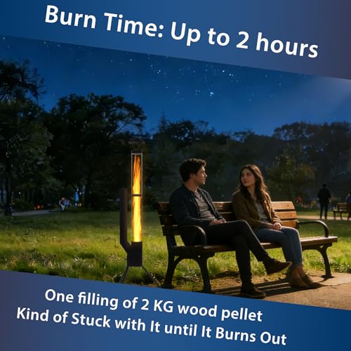 - Elegantes Design & moderne Ästhetik: Schlanker Outdoor-Pellet-Feuerkorb mit gehärtetem Glasrohr und stabilem Eisenrahmen; Ideal für Terrasse, Garten, Restaurant oder Café – als stylischer Heizer und stimmungsvolles Lichtobjekt