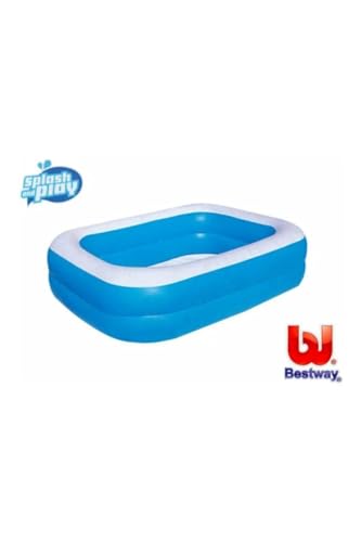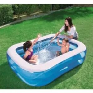 Bestway – Deluxe rechteckiger blauer aufblasbarer Pool, 211 x 132 x 46 cm, Blau/Weiß