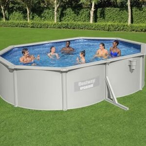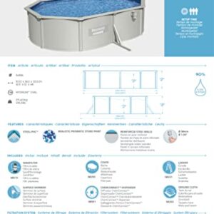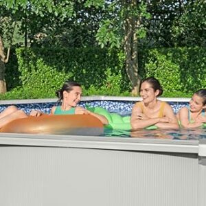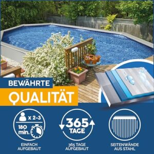 - Verstärkte geriffelte Stahlwände, UV-Schutzbeschichtete Premium-Einlage aus PVC, extra breiter Handlauf, integrierter Oberflächenskimmer