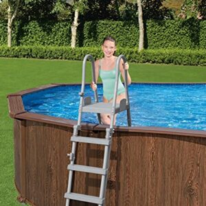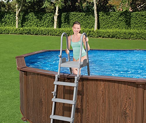 - Inklusive Sandfilteranlage (5678 l/h), Flowclear Sicherheitsleiter (132 cm), Flowclear PVC-Abdeckplane, Flowclear Bodenplane, ChemConnect Chemikaliendosierer, selbstklebender Reparaturflicken