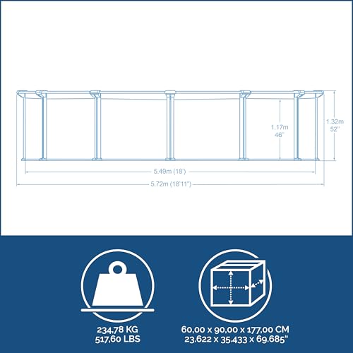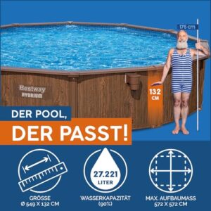 - Größe: 549 x 132 cm, Wasserkapazität (90%): 27.221 Liter, Innenverkleidung in Kieselmosaik-Optik