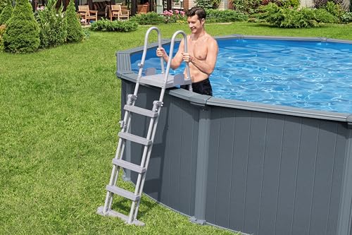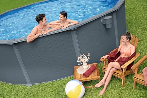 - EINFACHER AUFBAU & EDLES DESIGN: Dank des cleveren FastLatch Systems ist der Aufbau mühelos. Die edle, graue Holz-Optik außen und das Meereswellen-Design innen machen den Pool zum Blickfang. Der extra breite Handlauf sorgt für zusätzliche Stabilität.