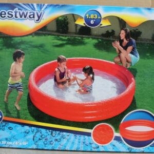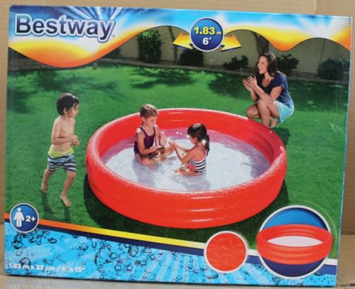 Bestway Planschbecken Kinderpool Pool 3-Ring Embossing (183 x 183 x 33 cm (Rot))