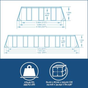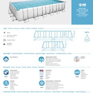 - Größe: 732 x 366 x 132 cm, max. Aufbaumaß: 783 x 413 cm Wasserkapazität (90%): 30.045 Liter, Innenverkleidung in Kieselmosaik-Optik, einfacher Aufbau ohne Werkzeug