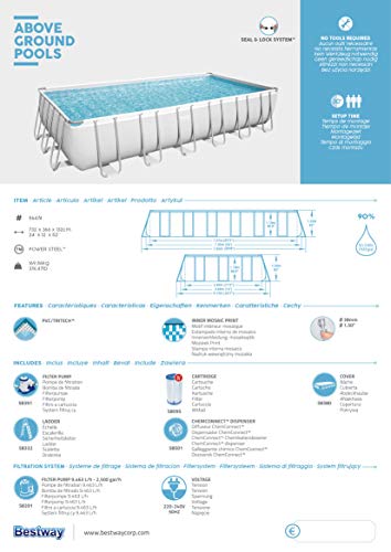 - Inklusive Filterpumpe (9.463 l/h, 220-240 V, 350 W, GS-zertifiziert (TÜV Rheinland), Schutzklasse I, auch geeignet für den Betrieb in DE / BE / LU) und passender Filterkartusche, Flowclear Sicherheitsleiter (132 cm), Flowclear PVC-Abdeckplane, ChemConnect Chemikaliendosierer